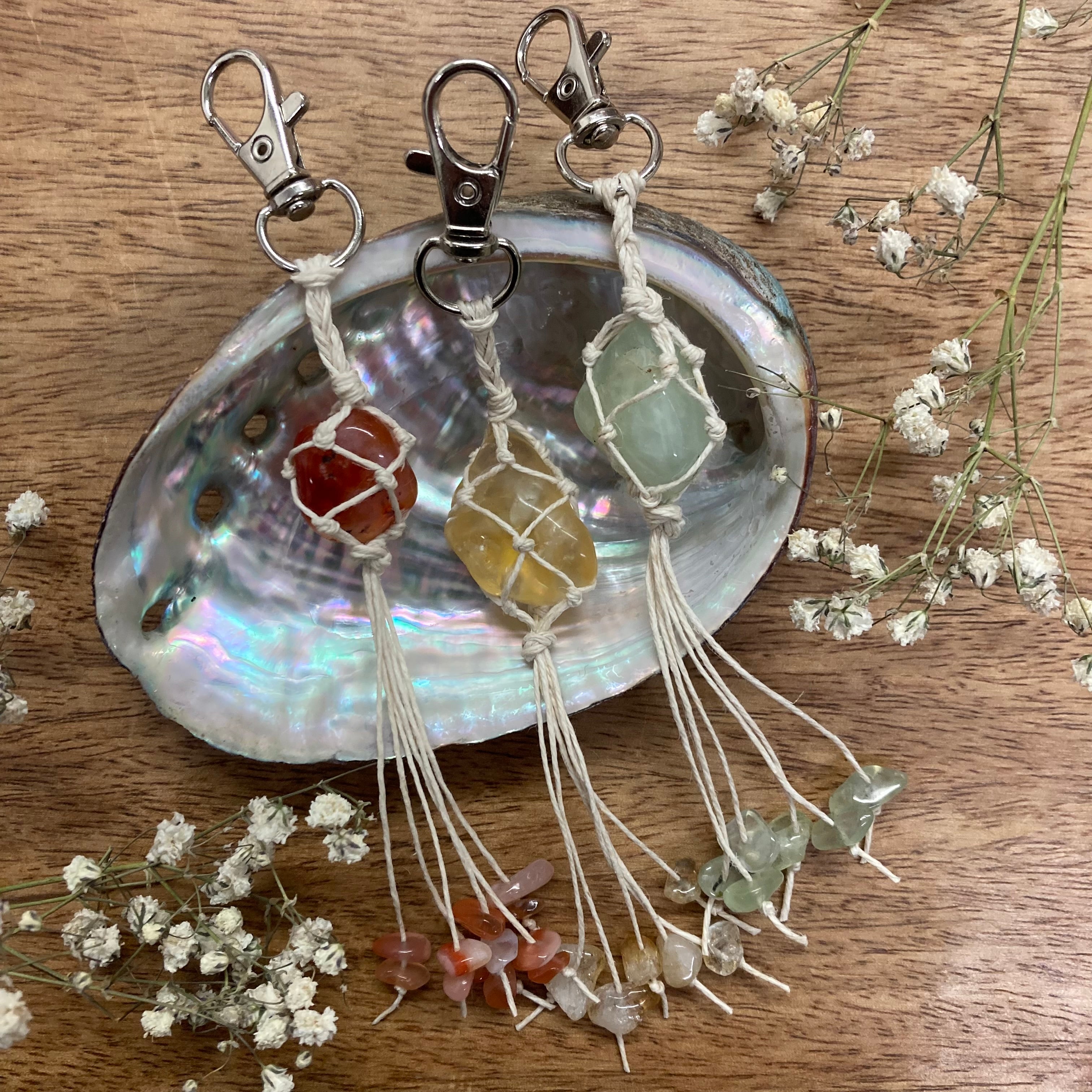 macramé crystal keychains!