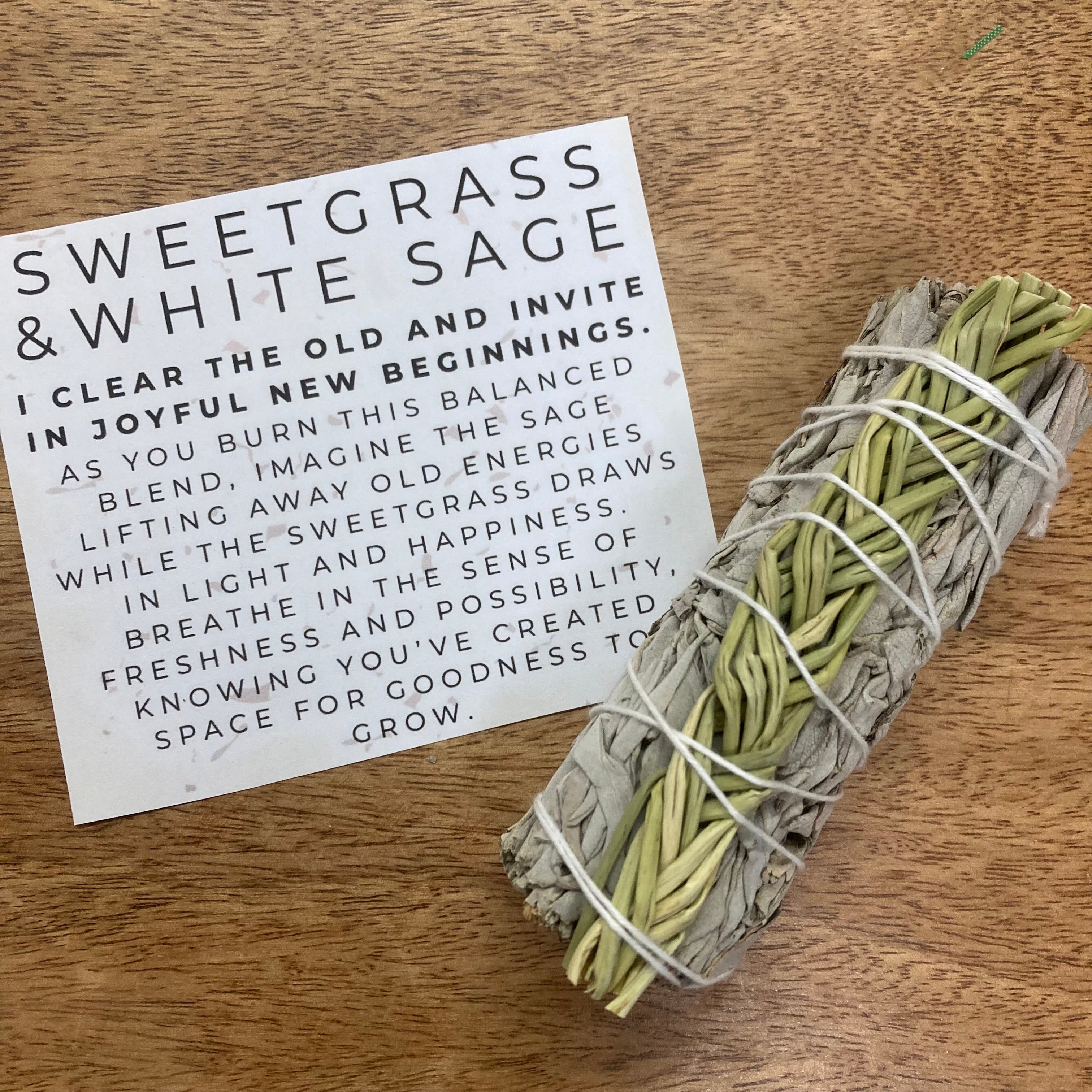 Sweetgrass and sage smoke wand with meditation & affirmation